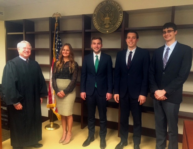 On April 2nd, Vice Chair, Judge Jeri K. Somers judged the final round of the McKenna Long & Aldridge “Gilbert A. Cuneo” Government Contracts Moot Court Competition at the George Washington University Law School. Judge Somers’ co-panelists were Judge Marian Blank Horn of the Court of Federal Claims and Judge Richard Shackleford, Vice Chair of the Armed Services Board of Contract Appeals. Leading up to the final round, on March 28th, Mr. Bryan M. Byrd, CBCA Attorney-Examiner, judged part of the advancement round of the competition. The problem involved the applicability of the Severin doctrine to a subcontractor’s pass-through claim and the Forfeiture of Fraudulent Claims Act.
